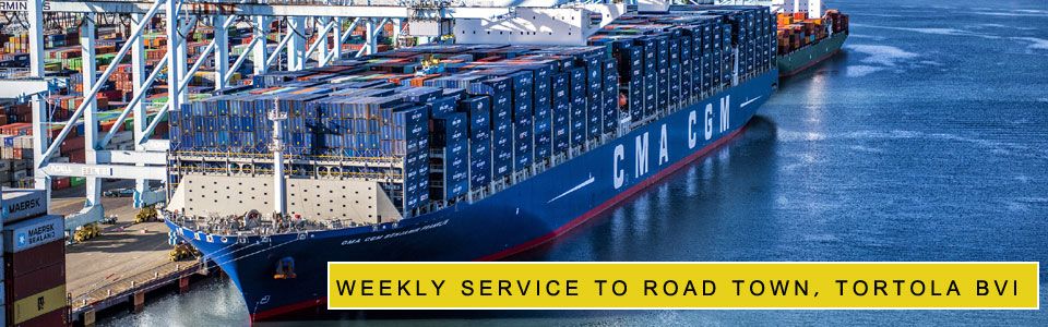 Shipments to Road Town, Tortola arrive weekly on Sundays.